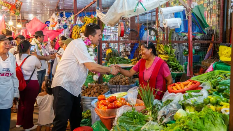 El candidato a la alcaldía de Santa Cruz, Gary Añez, continuó con su campaña electoral visitando este martes el mercado 25 de Mayo, donde destacó el apoyo de los ciudadanos y reafirmó sus compromisos con los vendedores y compradores de la ciudad.