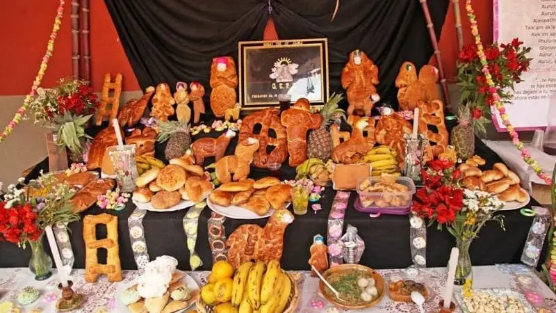 La festividad de Todos Santos se celebra cada 1 y 2 de noviembre, fechas en las que las familias bolivianas arman mesas con alimentos, panes, frutas y bebidas que simbolizan la bienvenida a las almas que regresan para compartir con los vivos.