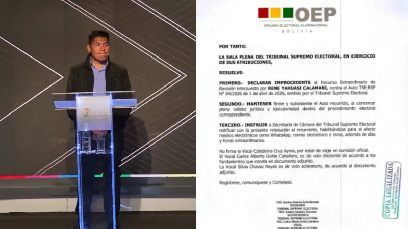 El Tribunal Supremo Electoral (TSE) declaró improcedente el recurso extraordinario de revisión presentado por René Yahuasi, ratificando la validez de las decisiones asumidas dentro del proceso electoral.