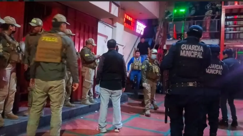 Durante la intervención, efectivos de la Policía Boliviana desalojaron a más de 70 personas de sexo masculino que se encontraban en el interior del inmueble, tras la verificación de sus documentos de identidad.