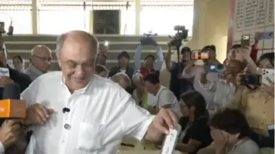 En el marco de la jornada electoral, el candidato a la Gobernación de Santa Cruz, Otto Ritter, llegó hasta su recinto de votación en la zona de Las Palmas para emitir su voto, en medio de una importante presencia de ciudadanos y medios de comunicación.