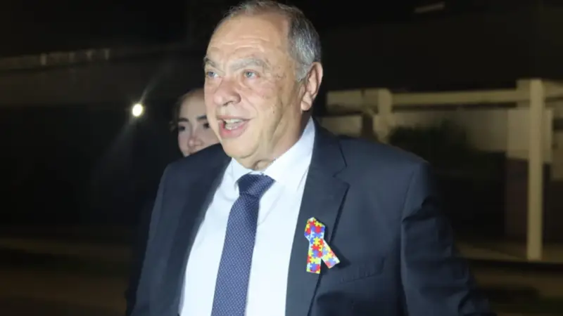 A pocas minutos del inicio del debate por la Gobernación de Santa Cruz, Otto Ritter llegó a instalaciones de la Fexpocruz, donde se desarrollará el esperado cara a cara.