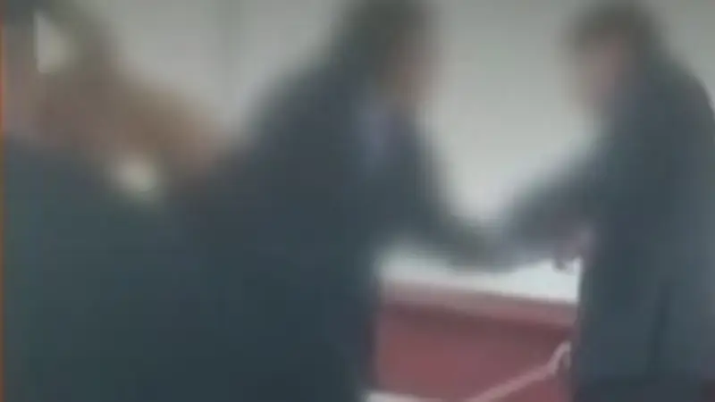 Los gritos de dolor y el llanto de una alumna se pueden escuchar claramente en el video, mientras el maestro golpea a una alumna en los glúteos con un palo grueso.