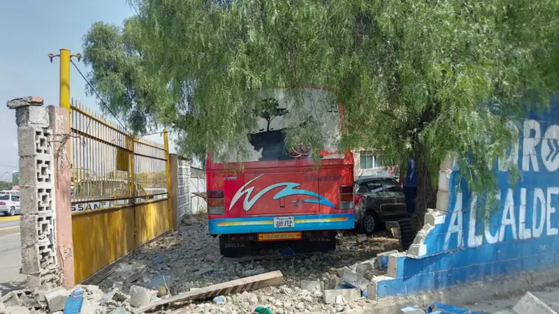 La parte frontal del vehículo de transporte público terminó totalmente destrozado por la fuerza del impacto, manchas hemáticas son visibles en el lado del conductor. El chofer fue llevado hasta un centro médico, para que reciba atención médica de emergencia.