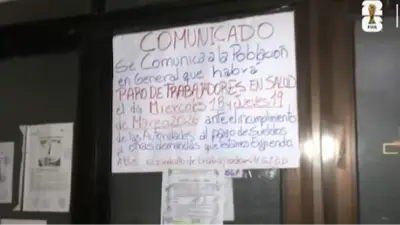 Los trabajadores de salud colocaron un comunicado en la puerta principal del hospital explicando su medida de presión y sus exigencias.