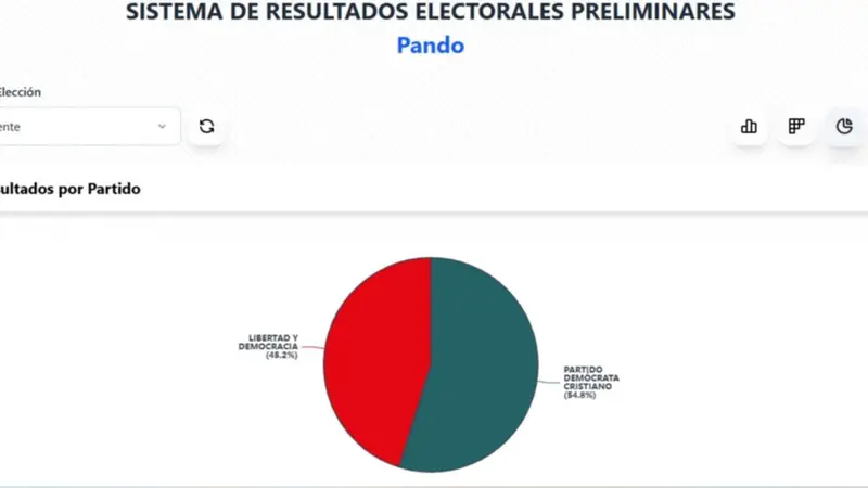 Según los resultados del Sistema de Registro y Procesamiento Electoral (Sirepre) del Tribunal Supremo Electoral (TSE), el Partido Demócrata Cristiano (PDC) obtuvo la victoria en la segunda vuelta presidencial en el departamento de Pando, alcanzando el 54,8% de los votos válidos.