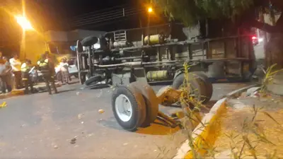 Un aparatoso accidente de tránsito se registró en la avenida Segunda Circunvalación, cuando un microbús de la línea "G" de transporte público terminó volcado y perdió las llantas traseras del motorizado. El conductor del motorizado habría resultado herido, afortunadamente no había pasajeros y se encontraba solo.