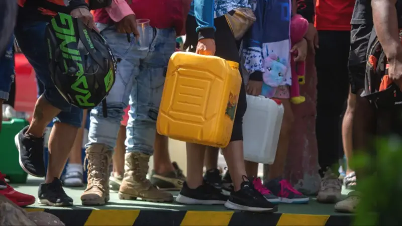 Pese a la lluvia que se registra desde tempranas horas de la jornada, persisten las largas filas de personas que buscan combustible en las diferentes estaciones de servicio de Santa Cruz a consecuencia del cerco que se registra en la zona de la refinería.