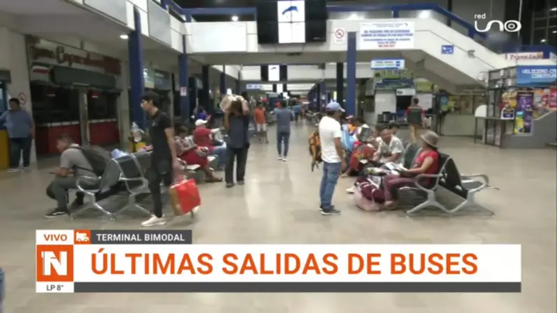 A pocas horas de recibir el 2026, la Terminal Bimodal de Santa Cruz presenta una inusual baja afluencia de pasajeros y el cierre prematuro de varios puestos de venta. El flujo concluirá oficialmente a las 21:30 con las últimas salidas interprovinciales e interdepartamentales, obligando a muchos viajeros a pasar la medianoche en plena carretera.
