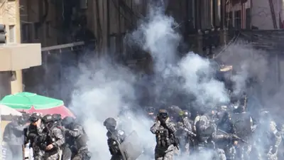 El inspector general de la Policía Boliviana, el general Gunther Agudo, reportó que marchistas habrían utilizado explosivos contra efectivos de la policía que realizaba vigilia alrededor de la Plaza Murillo.
