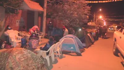 Así, en carpas, sillas de plástico y hasta en el suelo, padres, madres de familia y los mismos jóvenes pernoctan y esperan, soportando las bajas temperaturas de la temporada.