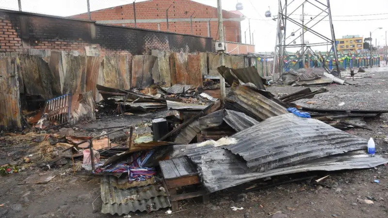 12 casetas de yatiris, amautas y guías espirituales ardieron en llamas y quedaron reducidas a cenizas. Se presume que el fuego se inició por una brasero mal apagado luego de una ch'alla que se intensificó por la gran cantidad de alcohol que hay en el lugar. Sucedió en la Av. Panorámica de la ciudad de El Alto.