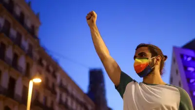 Las multitudes llenaron una céntrica plaza de Madrid, mientras en Barcelona se realizaba una marcha por una de las principales calles coreando eslóganes y ondeando pancartas y banderas con los colores del arco iris.