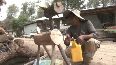 Con paciencia y talento, cerca de media docena de trabajadores transforman lo que otros ven como simple madera en verdaderas obras de arte que pronto embellecerán parques, plazuelas y áreas verdes de toda la ciudad.