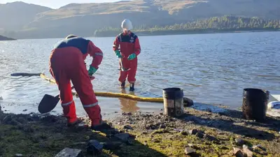 La empresa que transportaba el aceite contrató a personal especializado para la labor, tal como señala la norma. Hoy, se desplazaron al borde de la represa, realizarán un proceso de emulsificación. Mañana, se retirará el suelo. Se trata de Emride SRL, especialista en brindar servicios al sector industrial petrolero y manufacturero en las áreas de seguridad industrial, operaciones y medioambiental.
