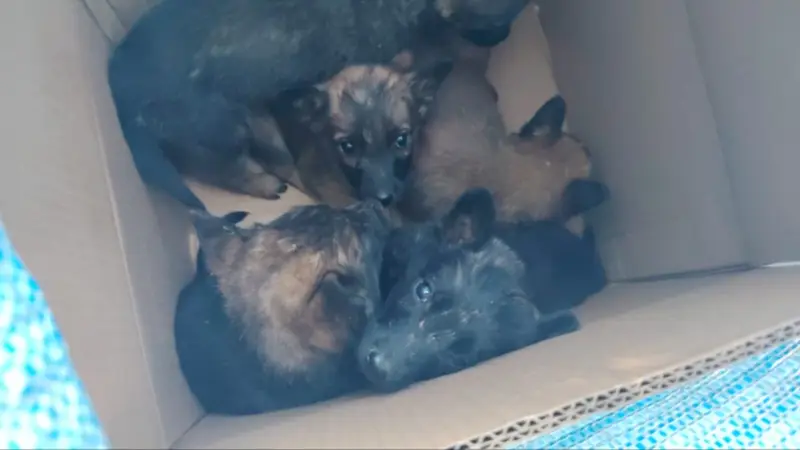 Durante la inspección, las autoridades identificaron a varios animales que eran transportados en condiciones precarias, hacinados en cajas de cartón y jaulas, sin las mínimas garantías de bienestar.
