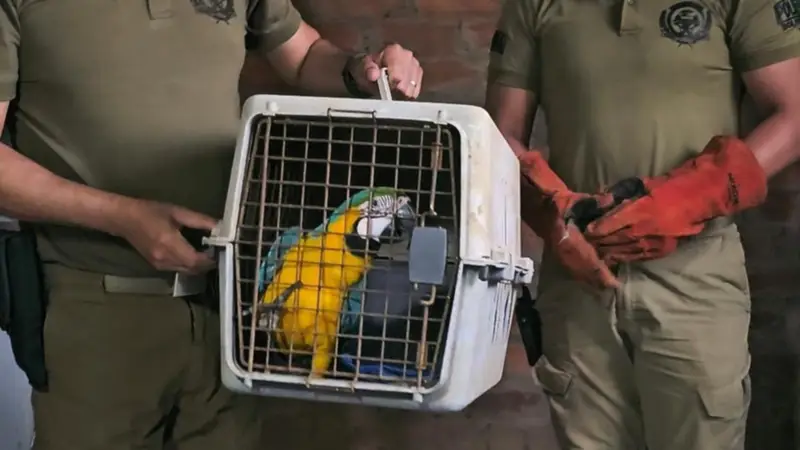 Un ejemplar de paraba azul y amarilla (Ara ararauna) fue rescatado por efectivos policiales de la Dirección Departamental de Pofoma en el departamento del Beni, luego de una alerta ciudadana que permitió una intervención oportuna.
