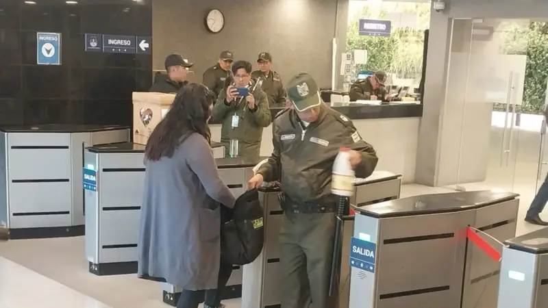 El coronel Erick Revollo, encargado de la seguridad policial en el edificio legislativo, retuvo el ingreso de bebidas alcohólicas al edificio legislativo, para evitar el consumo en esta institución pública por motivo de la tradicional Ch’alla de oficinas que se realiza este viernes.