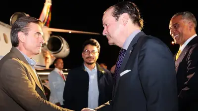 El embajador de Panamá en Bolivia, Julio Luque, junto al Canciller Javier Martinez, fueron los encargados de recibir al mandatario boliviano y a toda su delegación.