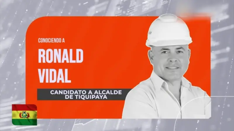 Con 45 años y una sólida formación como Ingeniero Civil, Ronald Vidal García se presenta como la opción técnica para la silla edil de Tiquipaya. Con maestrías en gerencia de construcción y diplomados en infraestructura, el candidato de Unidad Nacional apuesta por su experiencia profesional para abordar los problemas que, según afirma, "ya no pueden esperar".