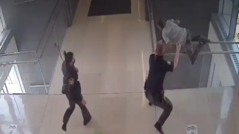 En ese momento el hombre decide huir de la sala en Ohio, Estados Unidos, y lanzarse por un balcón.
