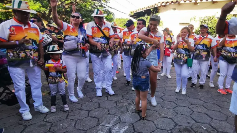 Su majestad María Laura I y la comparsa coronadora 'Januchos Jrs.' llegaron hasta el Casco Viejo para poder compartir con la gente, pero en especial con los más pequeños que la buscaban para bailar y tomarse fotografías.