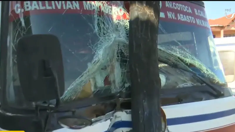 Un accidente de tránsito se registró la mañana de este martes entre el octavo y noveno anillo de la avenida Cumavi, en la ciudad de Santa Cruz. Un micro perteneciente a la línea 2 colisionó violentamente contra un poste de luz, provocando serios daños en la parte frontal del vehículo.