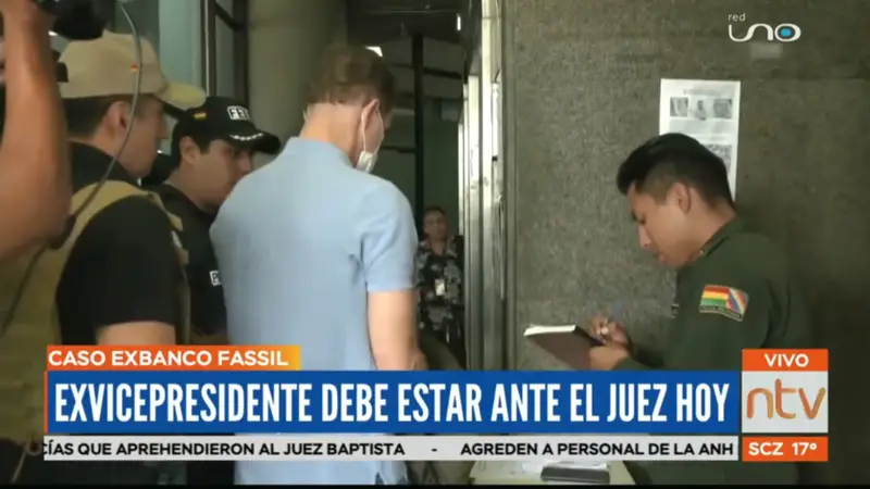 Así, hoy se instaló la audiencia cautelar en el Palacio de Justicia de Santa Cruz para definir la situación jurídica del exejecutivo.