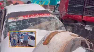 ¡El conductor sobrevivió de milagro! Un violento choque entre un vehículo pequeño y un camión de alto tonelaje se registró la mañana de este jueves en Santa Cruz, dejando como saldo un automóvil completamente destruido y un conductor que, contra todo pronóstico, salió sin lesiones visibles.