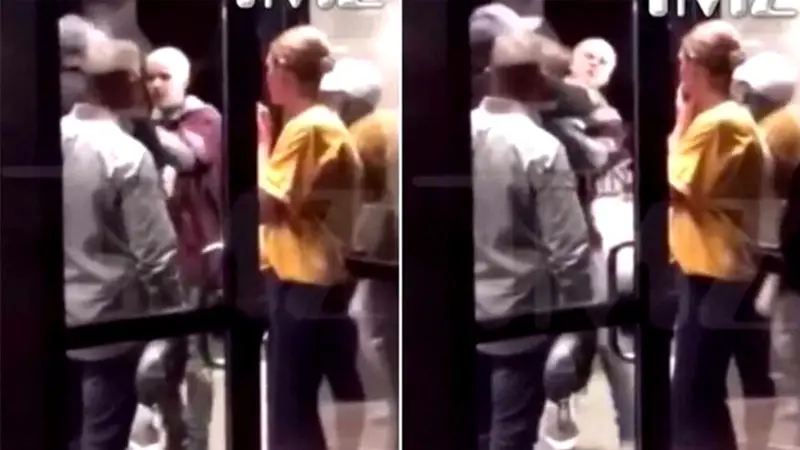 La respuesta fue inmediata: el desconocido lanzó un potente puñetazo que derribó al artista de forma instantánea. Pese a que Bieber intentó reaccionar y levantarse para continuar la riña, la diferencia de tamaño fue determinante, terminando nuevamente en el suelo frente a varios testigos y su esposa, Hailey Bieber, quien presenció el momento.