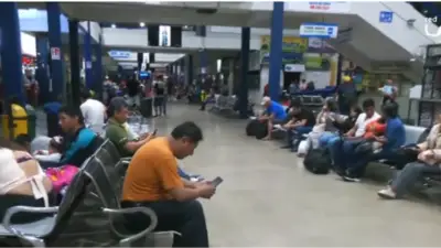 Familiares llegan a la terminal para despedir a sus hijos y seres queridos, mientras que el flujo de pasajeros se normalizará a partir de mañana jueves, cuando la terminal retomará su atención habitual.