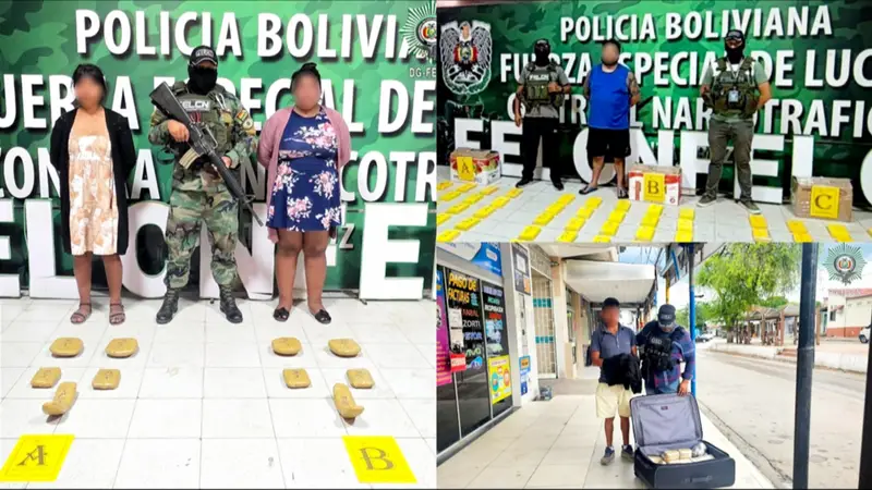 En una serie de operativos realizados entre el 25 y 26 de octubre, personal de la Fuerza Especial de Lucha Contra el Narcotráfico (Felcn) logró el secuestro de más de 100 kilos de sustancias controladas y la aprehensión de seis personas, durante acciones ejecutadas en distintos puntos del departamento de Santa Cruz.