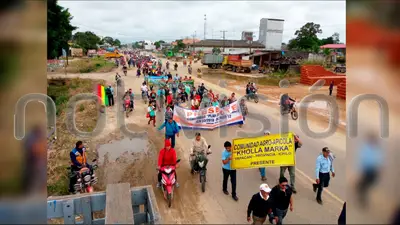 Mientras tanto, en el puente de Yapacaní, una larga fila de camiones espera varada, exigiendo a la Gobernación que entregue el documento que prioriza y financia el proyecto de asfaltado de la vía. Esta carretera de 62 kilómetros beneficiará a 72 comunidades distribuidas en más de 10 subcentrales y pueblos intermedios.