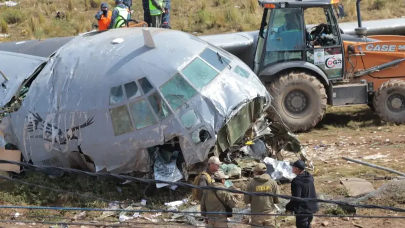 Viernes 27 de febrero, cerca de las 18:15, un avión militar de carga sufrió un accidente durante maniobras de aterrizaje en El Alto, salió de la pista e impactó contra varios vehículos que circulaban por la zona.