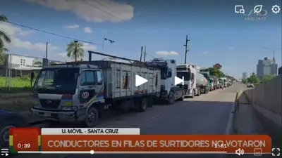 Por ejemplo, en el séptimo anillo de la avenida Cristo Redentor se registra una larga fila de camiones de alto tonelaje a la espera de poder cargar diesel