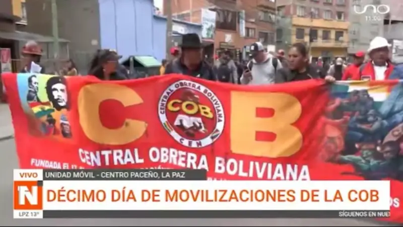 Este miércoles 31 de diciembre, la Central Obrera Boliviana (COB) realizó su décimo día de protestas con una marcha en el centro paceño. Representantes de este sector indicaron que se realizará un ampliado para definir si asistirán o no al diálogo convocado por el gobierno este 5 de enero.