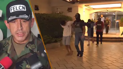 El director de la Felcn, coronel Nelson Campos, informó que la intervención se realizó tras un operativo ejecutado por Interpol en un departamento donde se encontraban los tres extranjeros.