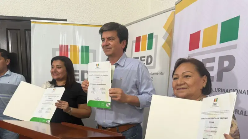 El acto de entrega de credenciales se realizó en instalaciones del TED cruceño y marcó el cierre de un proceso interno que se extendió por varios meses. Los tres nuevos asambleístas asumirán de inmediato las funciones dejadas por representantes de la alianza Creemos.