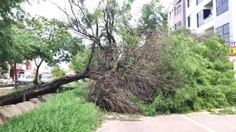 Uno de los árboles permanece sobre la Av. Cumavi, afectando al tráfico vehicular y peatonal en la vía. Hasta la mañana de este miércoles, no se registró la llegada de personal especializado para realizar la poda y tala del árbol.
