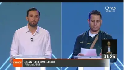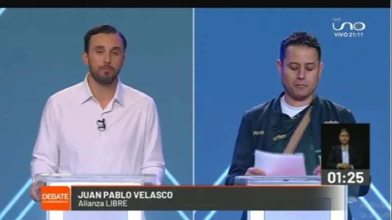 El control de redes sociales generó un cruce entre Edmand Lara y Juan Pablo Velasco durante el primer debate vicepresidencial organizado por el TSE.