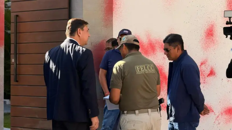 Según el reporte, cerca de las 02:00, dos personas encapuchadas arrojaron pintura roja y azul contra el inmueble, provocando daños visibles en la fachada. El hecho generó alarma en la familia del candidato.