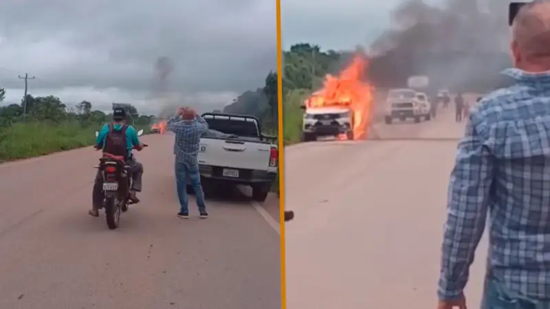 En videos grabados por personas que se encontraban en el lugar se observa a la camioneta completamente envuelta en llamas, mientras que a pocos metros otros vehículos permanecen detenidos y sus ocupantes observan con asombro la escena. En el otro extremo de la vía, un motociclista y un hombre registraban el hecho con sus teléfonos móviles.