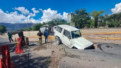 Pasado el mediodía de este lunes 2 de marzo, un vehículo cayó en un sifonamiento registrado en la avenida Beneméritos del Chaco, a pocos metros del distribuidor del Puente Quillacollo, en el centro de Cochabamba.