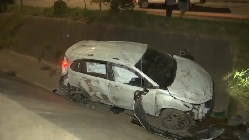 Un fuerte accidente de tránsito se registró en la avenida de la Radial 13 con Sexto Anillo, cuando un vehículo impactó contra un puente peatonal y derribó un poste de luz, cayendo posteriormente dentro de un canal.