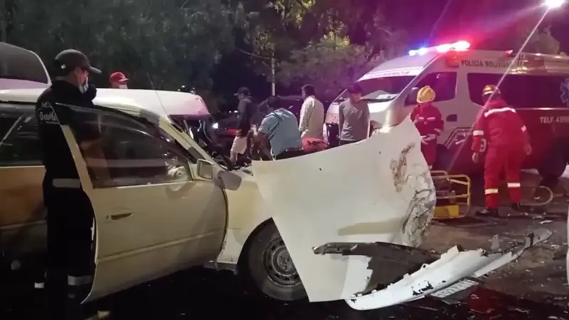 Tres personas resultaron heridas tras la colisión entre un minibús y un taxi en el Circuito Bolivia, Cochabamba. Bomberos y paramédicos realizaron un arriesgado rescate para liberar a uno de los conductores atrapado entre los fierros.