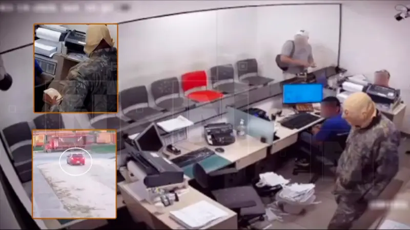 Las cámaras de seguridad captaron el momento exacto en que al menos tres delincuentes, encapuchados y armados, irrumpen en el área de cajas para sustraer aproximadamente Bs 817 mil. En las imágenes también se observa cómo los antisociales emprenden la fuga a bordo de un vehículo rojo.