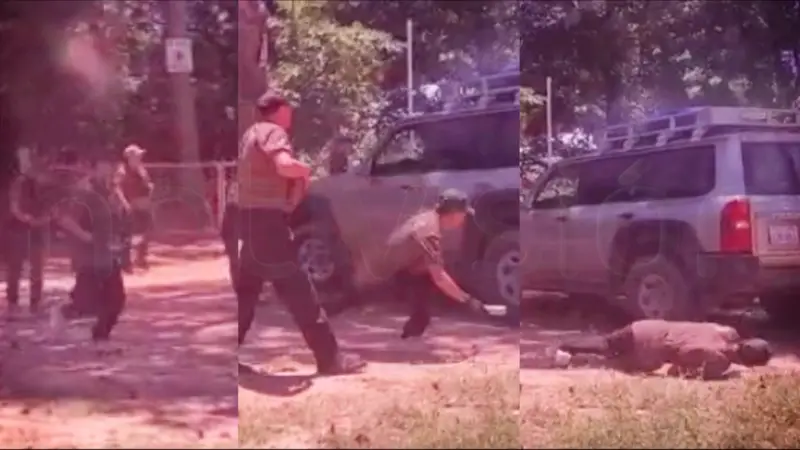 Vea el momento exacto en el que el sargento de la Policía Ronald Choque Mamani, de 27 años, corre y cae al piso durante una inspección de tierras en Limoncito, El Torno. El uniformado fue trasladado a un hospital, pero perdió la vida.