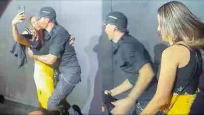 La muchacha salta de la emoción, y, totalmente en shock, mira a su ídolo y se baja del escenario. Después de retirar sutilmente a la fan, Enrique, sonriente en todo momento, volvió al escenario para terminar la canción.