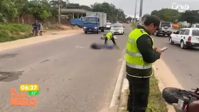 Efectivos policiales llegaron al lugar para realizar el acordonamiento de la escena y marcar las evidencias. Según el informe inicial, el motociclista habría impactado contra otro vehículo, cuyo parachoques quedó abandonado en el punto del hecho.
