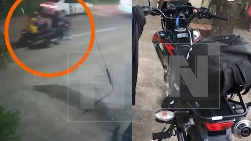 Cámaras de seguridad captaron a dos sujetos que llegaron en otra moto y, en menos de un minuto, se llevaron la motocicleta arrastrándola.